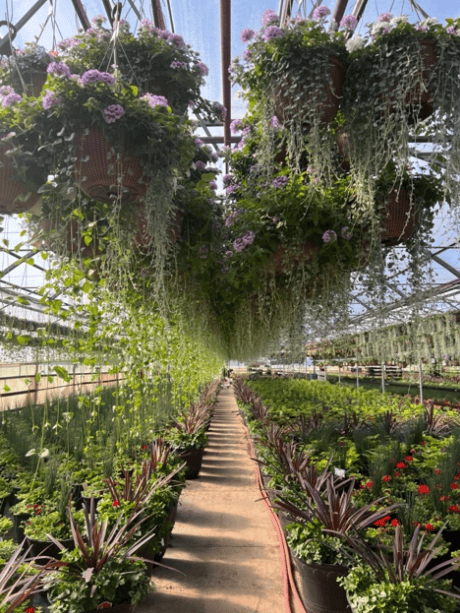 My production rotation then moved back to Brighton. Their new Piccadilly facility needed extra hands, and mine were happy to help. Piccadilly was acquired to keep up with the high demand from customers like Costco and Home Depot. Products produced here were mostly the more significant “combination” planters and hanging baskets that were being placed on a drip irrigation system. However, until the irrigation systems were in place, we hand watered. Watering took up much of the time in the first several days. Soon, I was given other tasks like scouting for pests and diseases, assisting with pesticide sprays, learning and troubleshooting the Galcon irrigation systems, joining the crop walks with other growers, and replenishing my fertilizer tanks.
